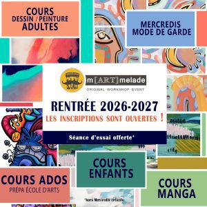Pour 2026-2027 : Place aux Ateliers Artistiques ! C’est le moment idéal pour libérer votre créativité ! Pour cette rentrée 2025-2026, l’Atelier Martmelade relance ...