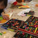 Crayons, pinceaux et palettes de couleurs les accompagneront dans des projets variés, toujours en lien avec le thème du jour.